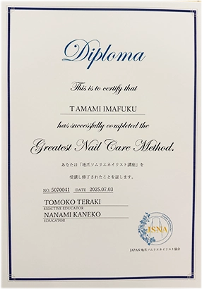 JNECネイリスト技能検定1級・JNECジェルネイル技能検定上級・ネイルサロン衛生管理士・最強のネイルケアメソッド・最強のネイルケアメソッド講師コース・地爪ソムリエネイリスト講座・地爪ソムリエネイリスト講師コース・パラジェルシルバーライセンス・パラジェルマシーンコース・JNAフットケア理論検定・Ryl flat巻き爪ベーシックコース